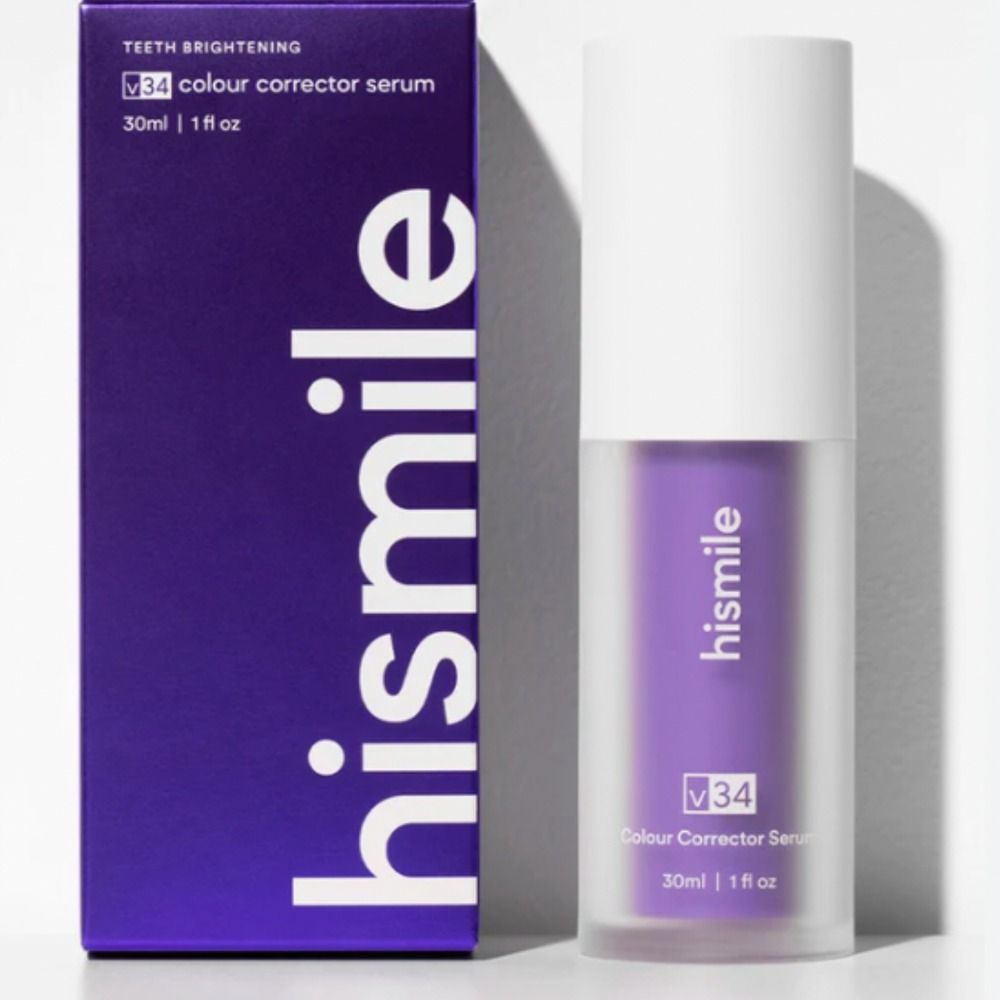Loyal to the HiSmile brand, Kim posted an Instagram story last night to show followers that the final step in her getting glam process is a quick treatment with HiSmile’s V34 Colour Corrector Serum ($29). “You guys are going to be obsessed because I’m obsessed,” she says as she squeezed a small amount of the vibrant, purple serum onto her brush. After wetting the brush and serum and before beginning a quick clean, the celeb explained that the product is “like the purple shampoo of teeth,” as it uses V34 color correcting technology to minimize unwanted yellow tones and staining.