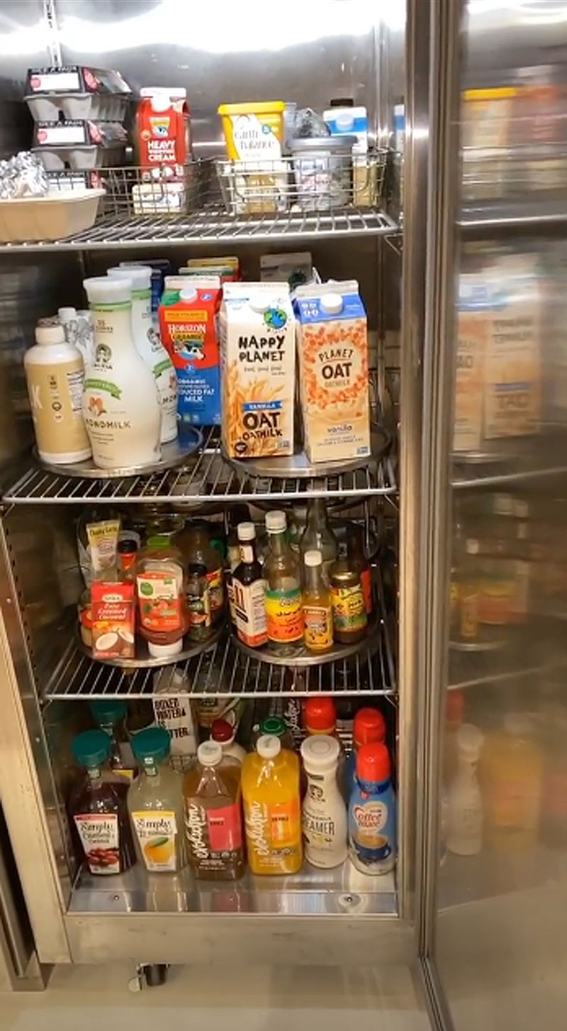 “It did look like an empty refrigerator,” she acknowledged of the previous photo, “but this is our main refrigerator, guys,” she says as she opens an industrial-sized walk-in fridge, complete with endless shelf space for all of her “fresh, organic produce.” Also on shelves: organic cheeses, salad dressings, plenty of eggs and her plant-based meals. “I only eat plant-based now,” she reminded fans.