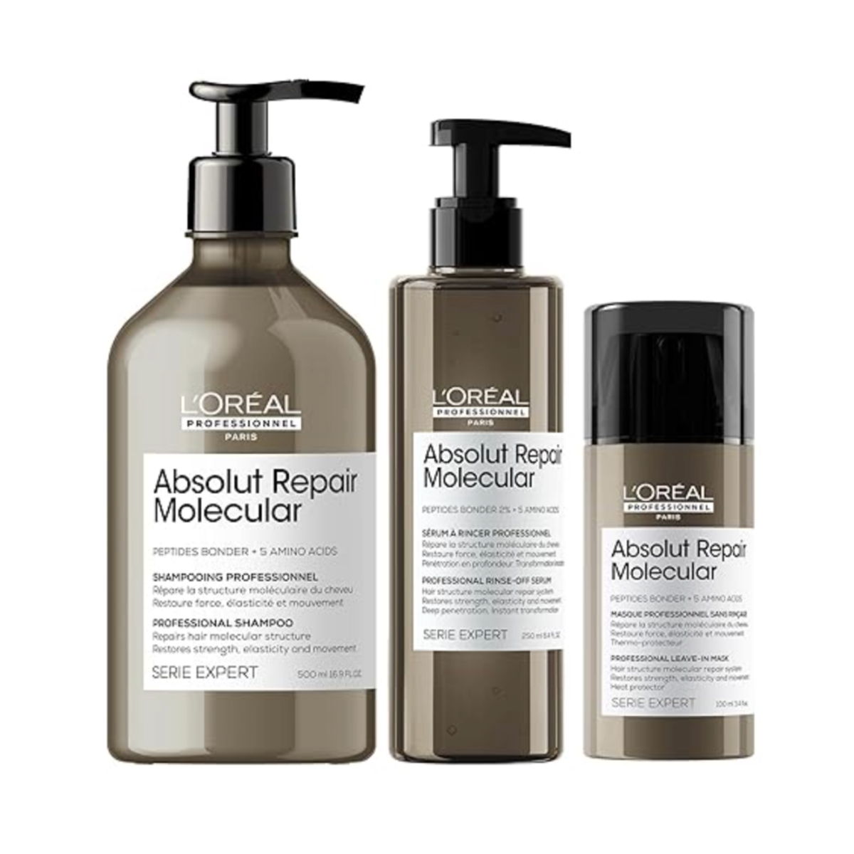 Designed to visibly repair years of damage in one use, L’Oréal Professional’s Absolut Repair Moluecular Shampoo, Rinse-off Serum and Leave-In Cream ($131) refresh hair no matter the source of damage. Whether hair is brittle from over processing, dry from heat styling, or breaking from replicating the Hailey Bieber slicked-back bun, the Absolut Repair Molecular line will repair hair’s molecular structure while providing intense hydration, reducing breakage and enhancing shine to help hair look and feel smoother and more manageable.