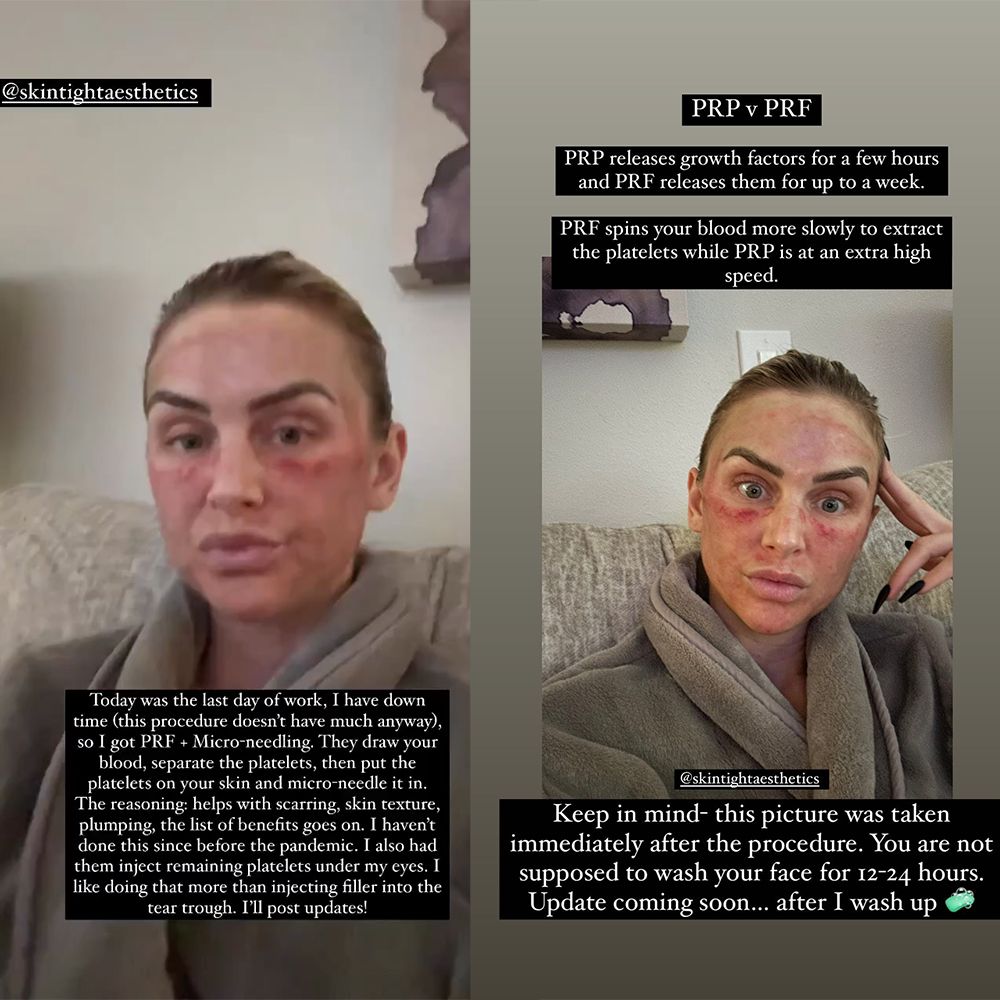 Vanderpump Rules' Lala Kent says she hasn't had microneedling done since before the pandemic, but it's her go-to skin treatment, even if the day-after results look a little harsh. The 32-year-old reality TV star posted on her Instagram stories that the treatment combination of microneedling and PRF left her looking a little worse for wear, but she swears by it to rejuvenate her under-eye area and she prefers it to filler injections.