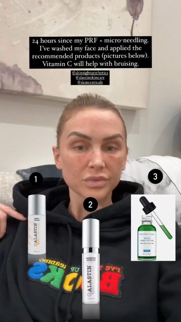 Her post-procedure toolkit includes the Alastin Gentle Cleanser ($45), Alastin Restorative Skin Nectar ($199) and Skinceuticals Phyto Corrective Gel ($70). "24 hours since my PRF and microneedling and I've washed my face and applied the recommended products," she wrote. "Vitamin C will help with bruising." Good tip! Thankfully, we know from experience that day-of photos can be quite harsh so it will be nice to see how Kent's results progress. We'll be sure to keep an eye on during the reunion for the upcoming season of Vanderpump Rules.