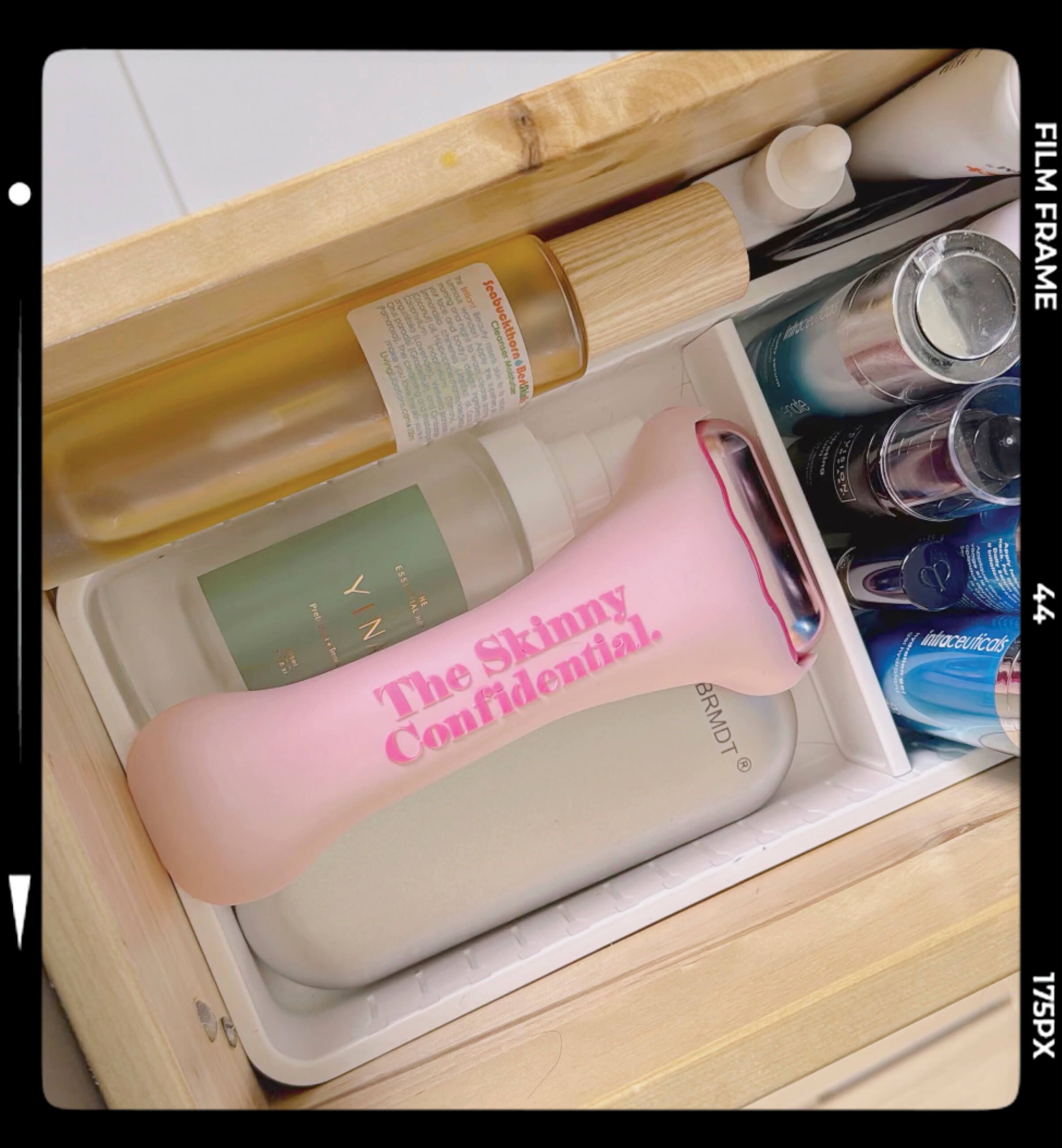“The Skinny Confidential Ice Roller is the holy grail for me. I use it the second I wake up, before I apply makeup, and throughout the day. I’m so puffy, and it instantly de-puffs my face, primes it for skin care, and feels so good. I crave it. It’s a no-brainer after procedures like microneedling, too. I also use it over sheet masks or eye patches. Barefaced and VREA make the best eye patches. You can run the roller under hot water and use it warm on your neck, too. It’s so relaxing.”