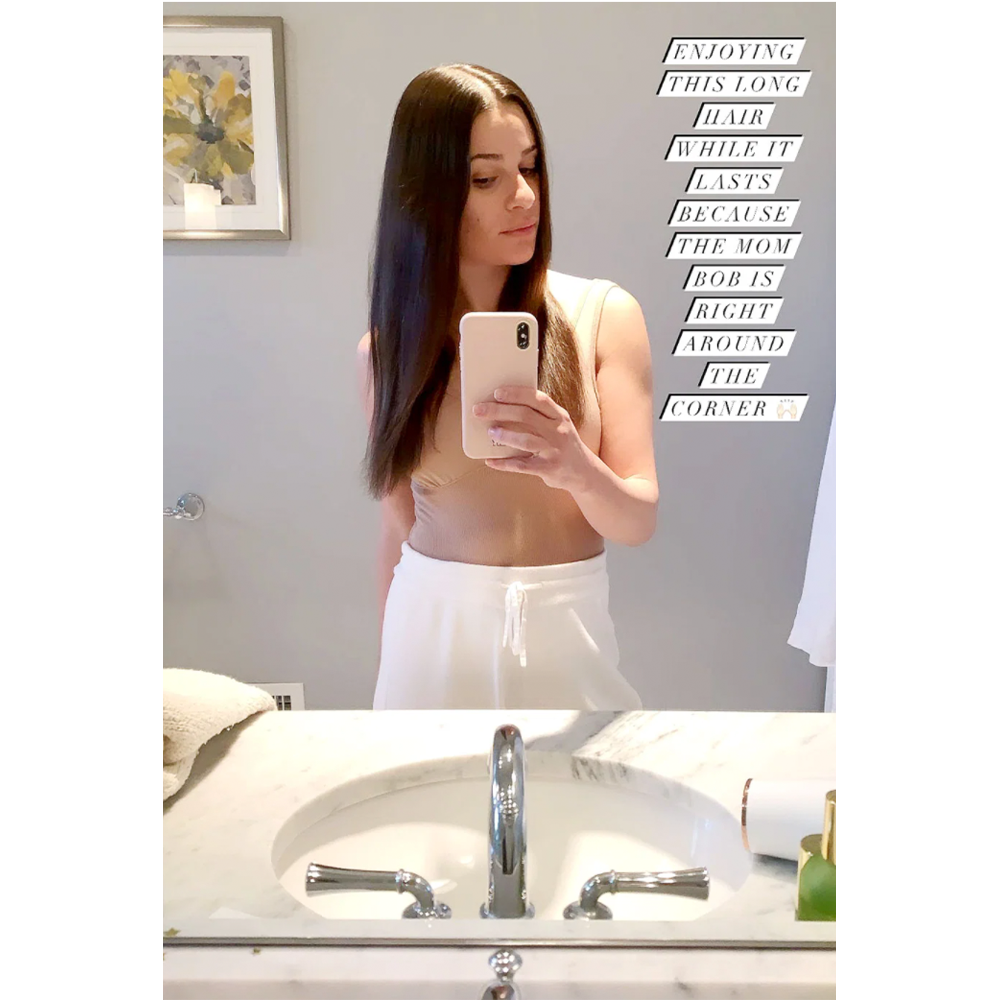 On Wednesday, the 34-year-old took to Instagram to share that she's been experiencing postpartum hair loss. “Enjoying this long hair while it lasts because the mom bob is right around the corner,” she says in her post.