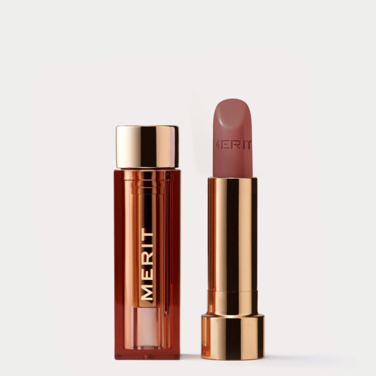One final step to pull together Collins’ “sultry” eye look was a “soft swipe” of Merit’s Clean Lash Mascara ($26). And, of course, no makeup look is complete without a little lipstick. Collins is wearing the Signature Lip Lightweight Lipstick in Baby ($26), a gorgeous neutral pink.