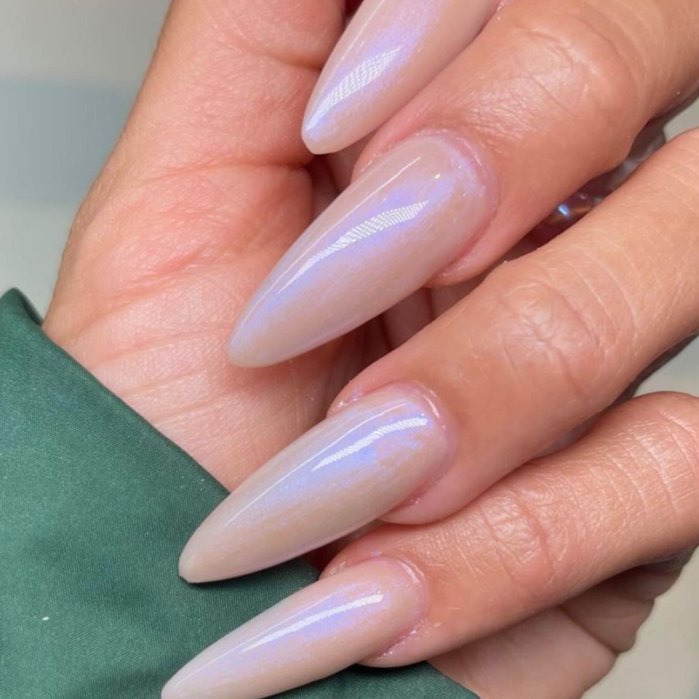“Lip gloss nails are really just sheer and jelly nail colors,” begins nail expert and founder of Deco Beauty, Julia Dahbura, “But, these aren’t your grandma’s sheer pink nails—aura nails and iridescent toppers are a super on-trend part of lip gloss nails that are often used to add a little spice to the look.” As V Beauty Pure educator, Alison Martinez, adds, lip gloss nails are “high shine, sheer nudes, and pinks—think ‘clean girl’ era! They are very clean and very milky, with soft, sheer nudes and a high-shine top coat.”