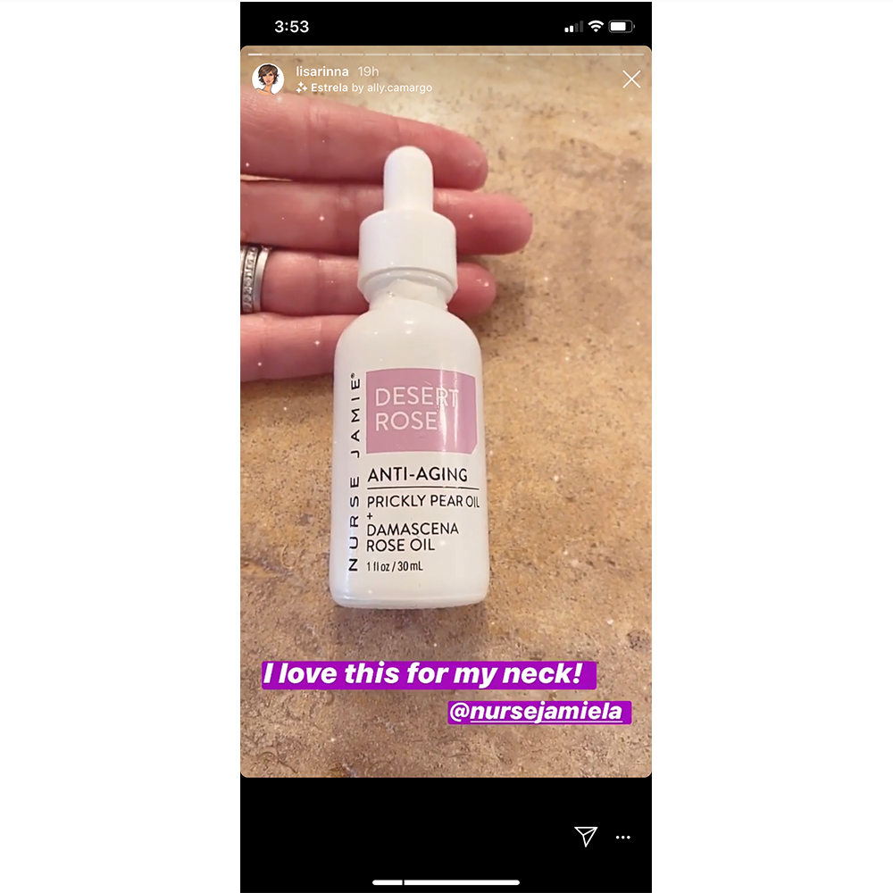 In her latest Instagram story, she debuted Nurse Jamie's Desert Rose Anti-Aging Face Oil ($75) saying, "I love this for my neck!" Many of us probably forget to apply skincare to our neck, but no matter what age you may be, it's never too early to pick up the habit.