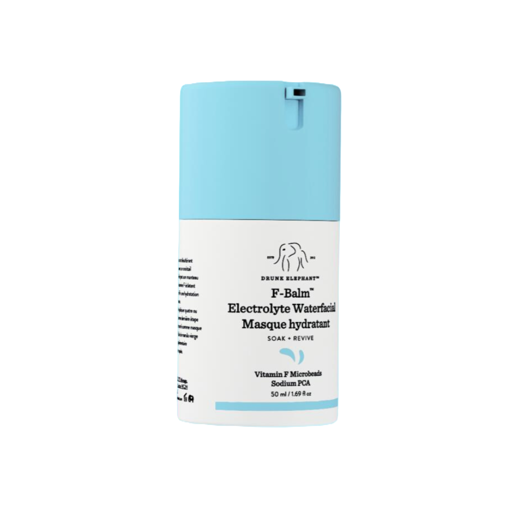 Applying Drunk Elephant F-Balm Waterfacial ($54) effectively rehydrates hungover, overly parched skin, making it soft and supple. Tiny beads loaded with vitamin F burst during application to deliver extra emollience and soothing hydration.