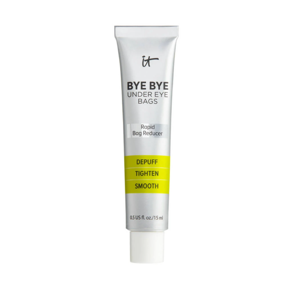 To fully harness its power, wait until all your other products have fully absorbed, then apply a pea-size amount per eye. Then, relax your face until the product is completely dry (it should take about 15 minutes)—you’ll literally feel the skin tighten and see the difference. Keep in mind, though, this product is intended to be a quick fix and should not replace other products in your skin-care routine and should be used to complement your eye care routine that features other ingredients, like peptides, niacinamide and retinol. IT’s Bye Bye Under Eye Bags is only intended for use during the day.