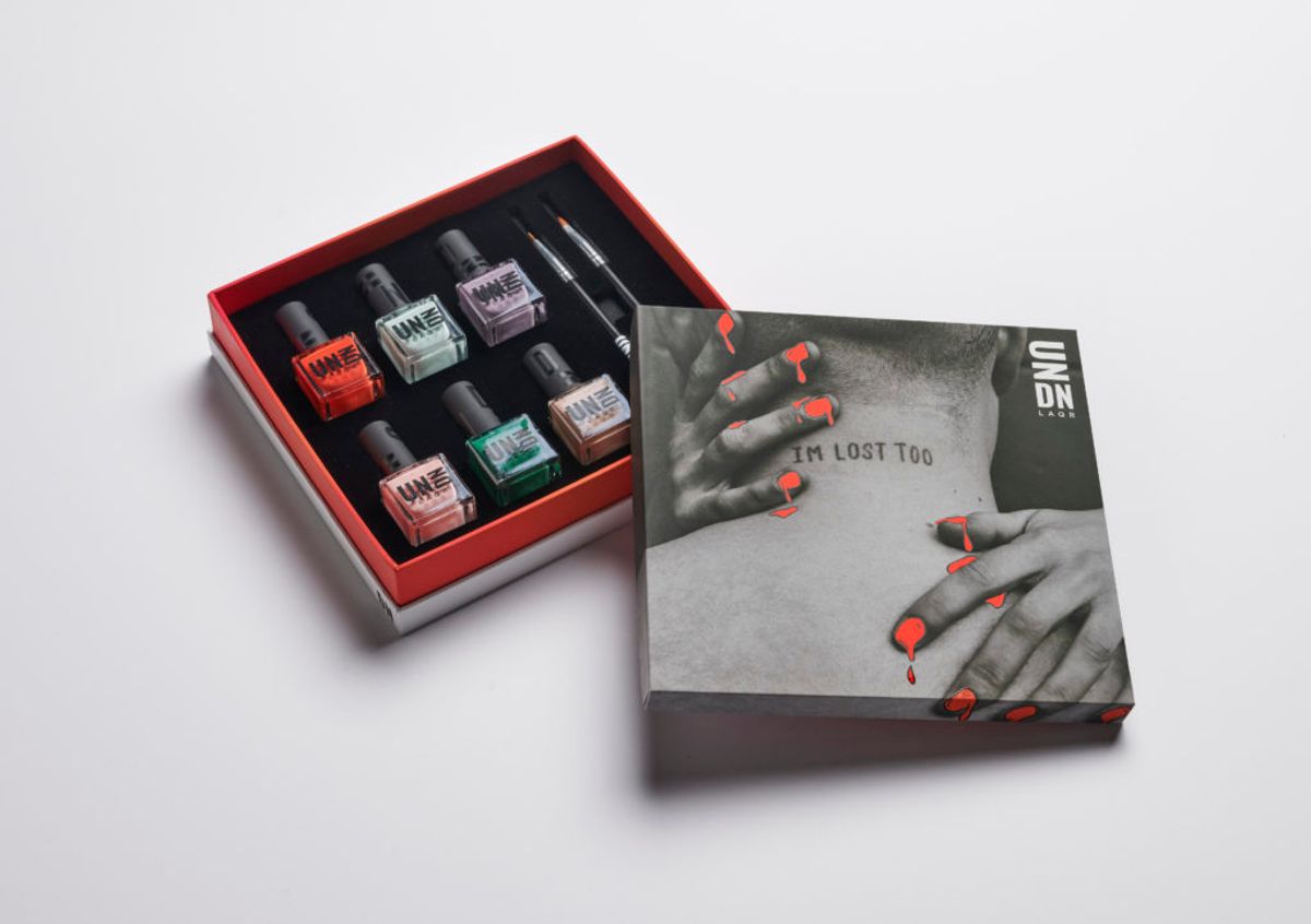 The brand UN/DN LAQR is a genderless nail polish line. Per a statement, Machine Gun Kelly was “inspired to create his own nail polish collection, one that doesn’t conform to age and gender norms set by traditional nail brands and fully embraces self-expression and creativity without commitment.”