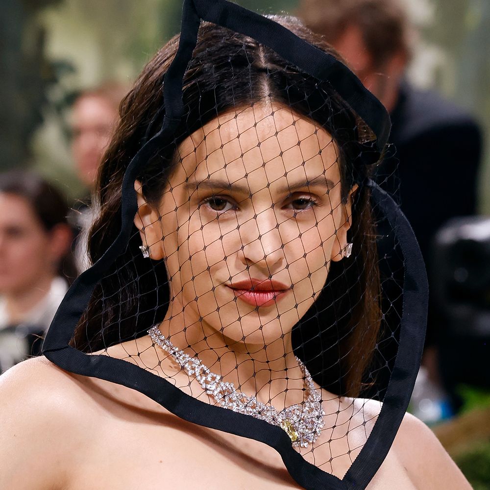 For Rosalía’s look, celebrity makeup artist Shelby Smith wanted the lip to be the statement. “We kept the skin sculpted to enhance her natural features—timeless and elegant—while pairing it with a modern twist on the classic red lip,” says Smith. “I defined her lips with a rich brown using Rouge Dior Contour in shade #400 Nude Line. Then I added a pop of red to the center of the lips with a combination of Rouge Dior Couture Color Velvet Lipstick in #866 and #840 for the perfect burnt hue and dimensional appearance.”