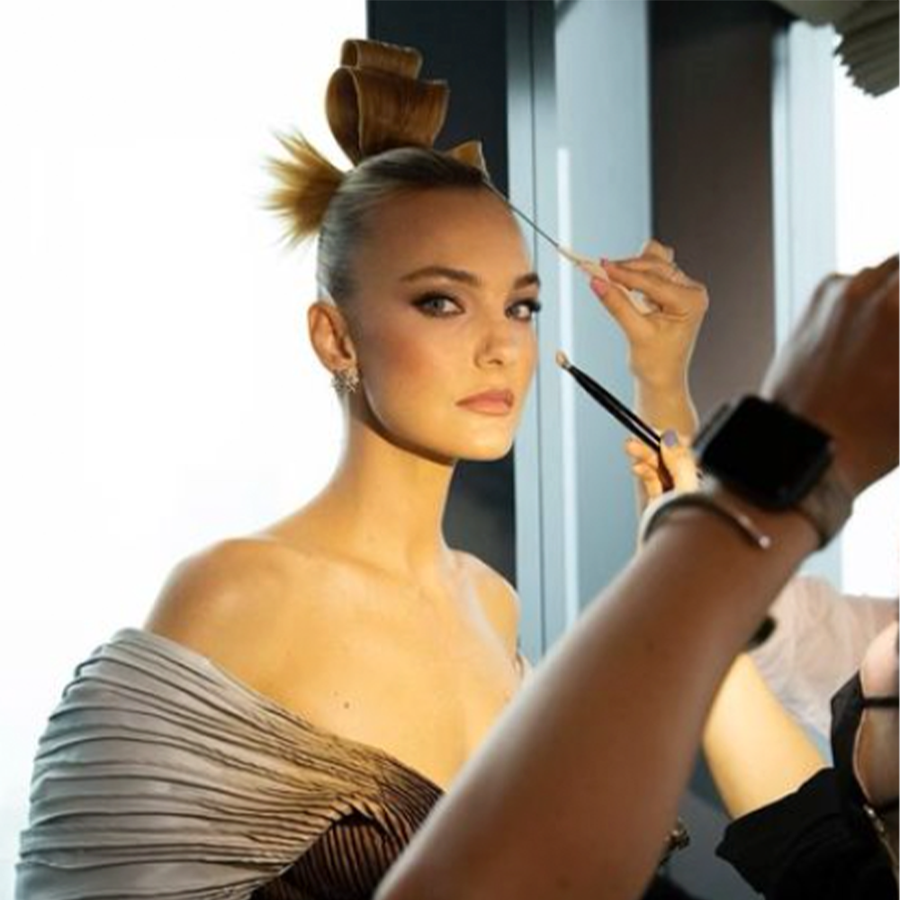 Hairstylist Erol Karadağ brought Caroline Trentini's hair to a whole new level with her multi-layered slicked back bun.