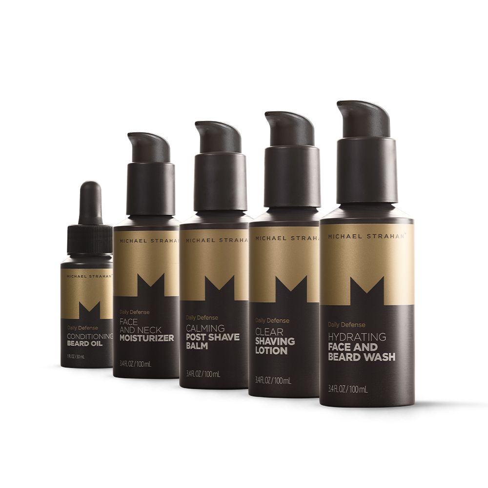 For some New Yorkers, he’s also one of the big factors behind bringing home a Super Bowl win via the Giants, a team he stayed with for his full 15-year pro football career. Then there are several clothing lines, sold everywhere from Men’s Wearhouse to QVC, and, this September, there’s skin care—in the form of Michael Strahan Daily Defense, a five-piece collection that he describes as less of another celebrity launch and more of “a natural extension” of what he’s always done.
