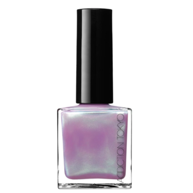 This pale purple nail polish combines an iridescent effect with a soft baby blue for a shimmering duo color that catches light and delivers a high-gloss finish.