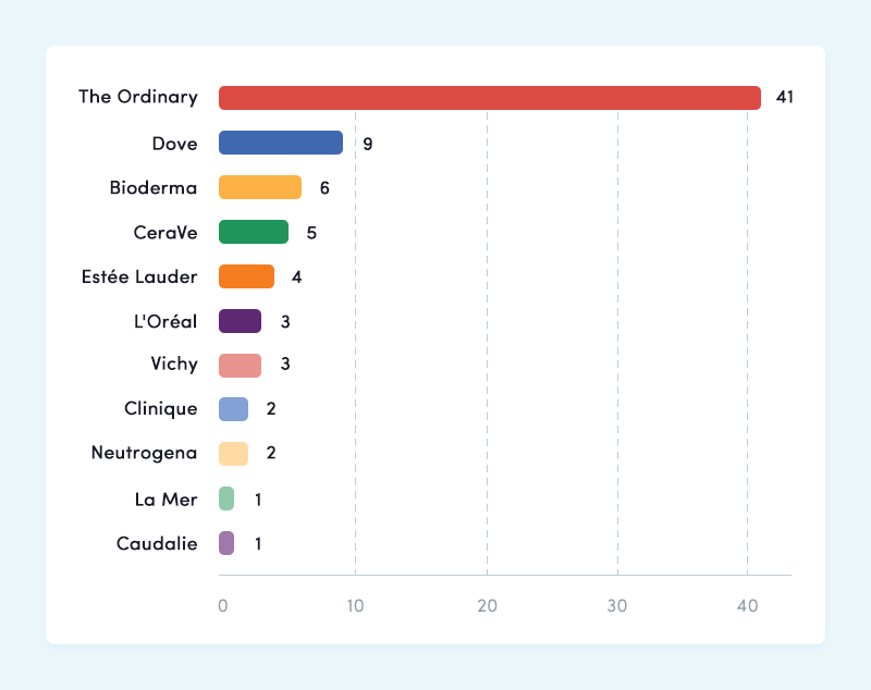 Other big-name brands included in the study were Augustinus Bader, Biologique Recherche, Drunk Elephant, Neutrogena, Olay, SkinCeuticals, SkinMedica, Sunday Riley, and Vichy. To see the full list and more about the data analysis, click here.