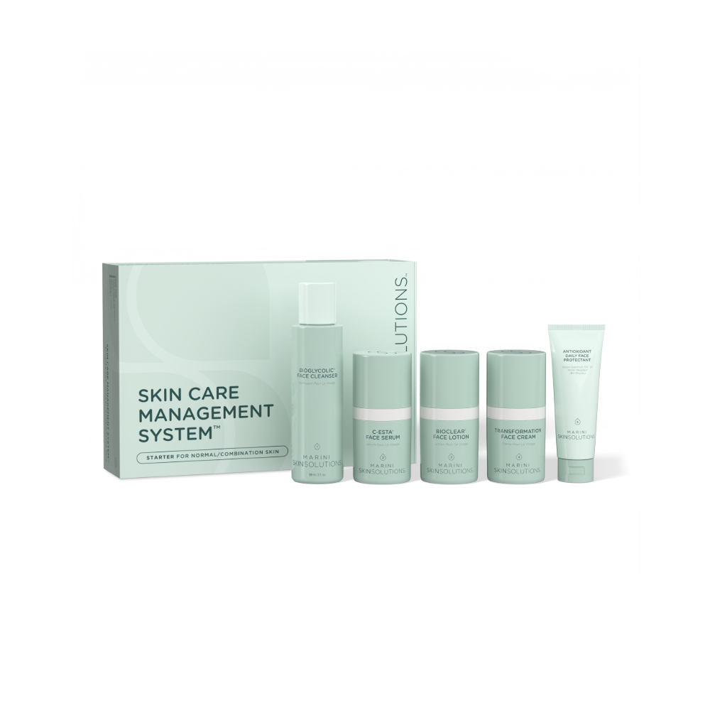 Consistently recommended by derms and aestheticians, Marini Skin Solutions Skin-Care Management System offers a harmonious five-piece routine for foolproof (and transformative) results.