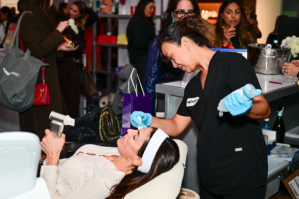 Attendees were also treated to mini services and treatments right on the spot. Dermalogica PRO provided on-site microneedling while showing off its Luminfusion device, Hydrafacial offered lip treatments, PCA Skin demonstrated hand peels and Sofwave provided on-site treatment demos, with an accompanying (and much-appreciated) glass of Prosecco. Speaking of drinks, attendees also sipped signature martinis from Motiva while chatting all things breast implants and Renuvion (of the famous body contouring technology) catered juice shots to all while hosting a confessional booth.