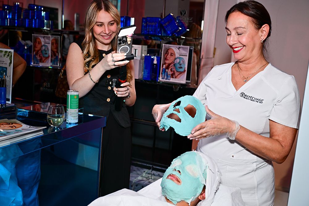 Nearly two dozen aesthetic and beauty brands took over the event with booths led by brand experts. In the skin care category, guests were exposed to AI technologies from Marini SkinSolutions and introduced to No7’s Pro Derm Scan skin analysis, while EltaMD and Alastin Skincare gave out free personalized skin consultations. Hero products were shown off too: Repêchage offered facials with their Triple Action Lift Peptide Collection and Colleen Rothschild Beauty prominently featured its Bio-Azure Replenishing Oil, a deeply hydrating and skin-firming elixir. In our indie brand section, EpicLight showcased their Lip Flip Tints, Luminizing Glow Gel, and Never Settle Radiant Cheek + Lip Blush, while Pareva Beauty demonstrated the COLL20 Gel Cream Moisturizer, C35.5 Firming Glow Serum, and RH5.5 Hydrabond Primer. Guests also went on a clean scent journey as VOESH showcased their exfoliating body wash, body balm, and hand balm. Spicing the night up even more, High On Love delighted with a claw machine full of their signature self- and sensual-care products for attendees to win.