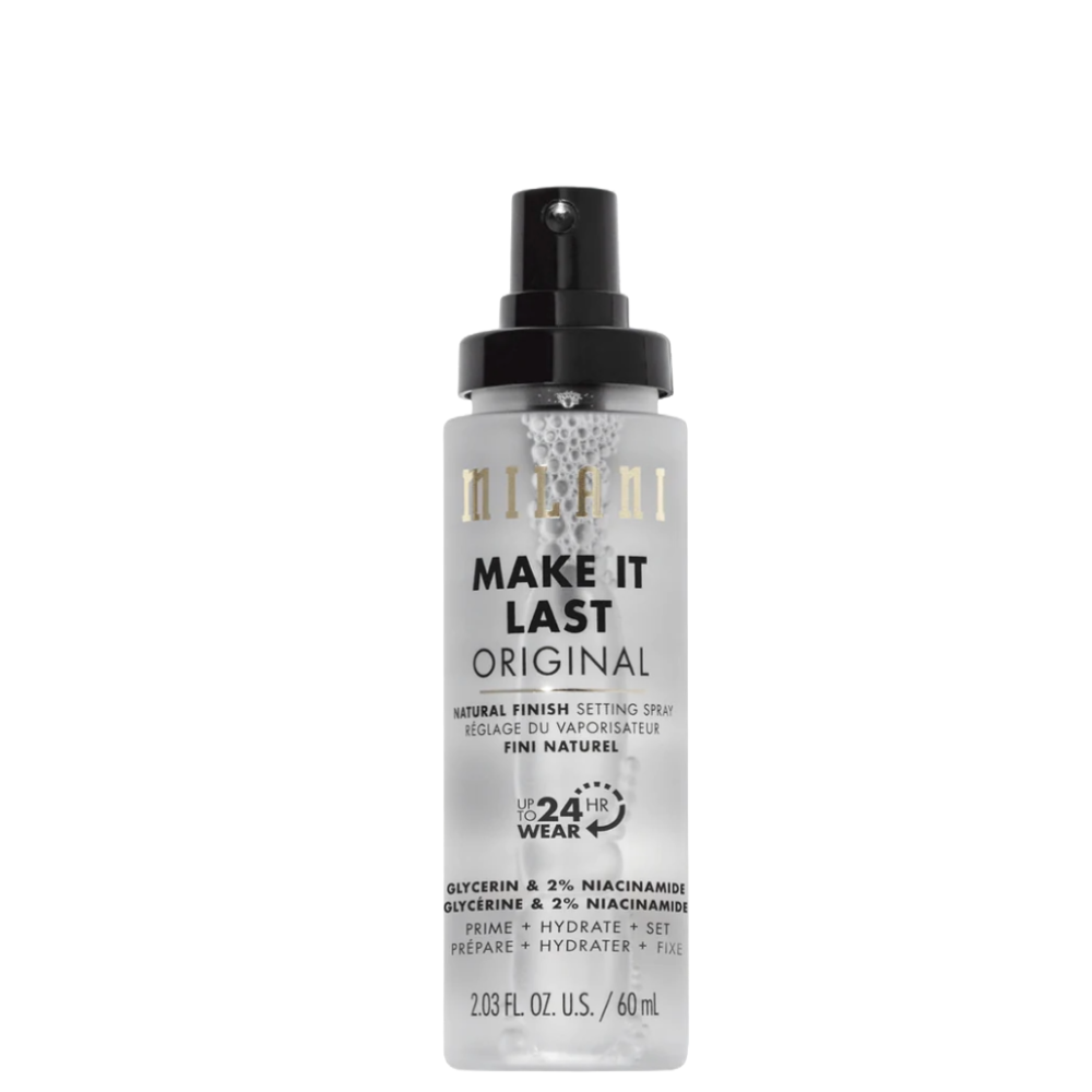 With 24-hours of wear, Milani’s Make It Last Setting Spray was voted America’s #1 Setting Spray for a reason. Packed with moisture-rich glycerin and powerhouse 2-percent niacinamide, this waterproof, sweat-proof formula preps, hydrates and sets makeup for a flawless finish that is guaranteed to last you all day long.