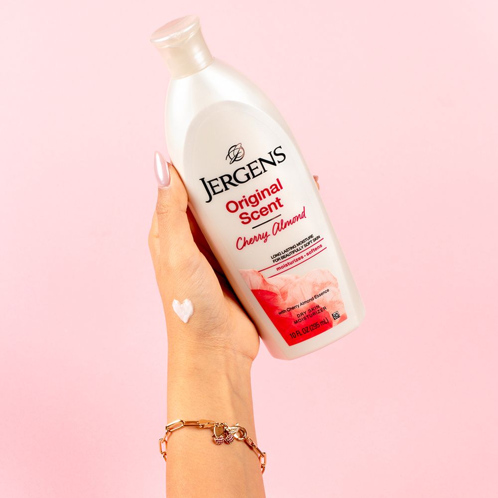 “Well, you know, I religiously apply sunscreen now, and my morning routine consists of 17 steps with all my serums. But when Jergens approached me, I was thrilled because it’s such an iconic brand, and the cherry almond scent has remained unchanged. I always keep a bottle on hand—it’s been a staple in my life for as long as I can remember.”