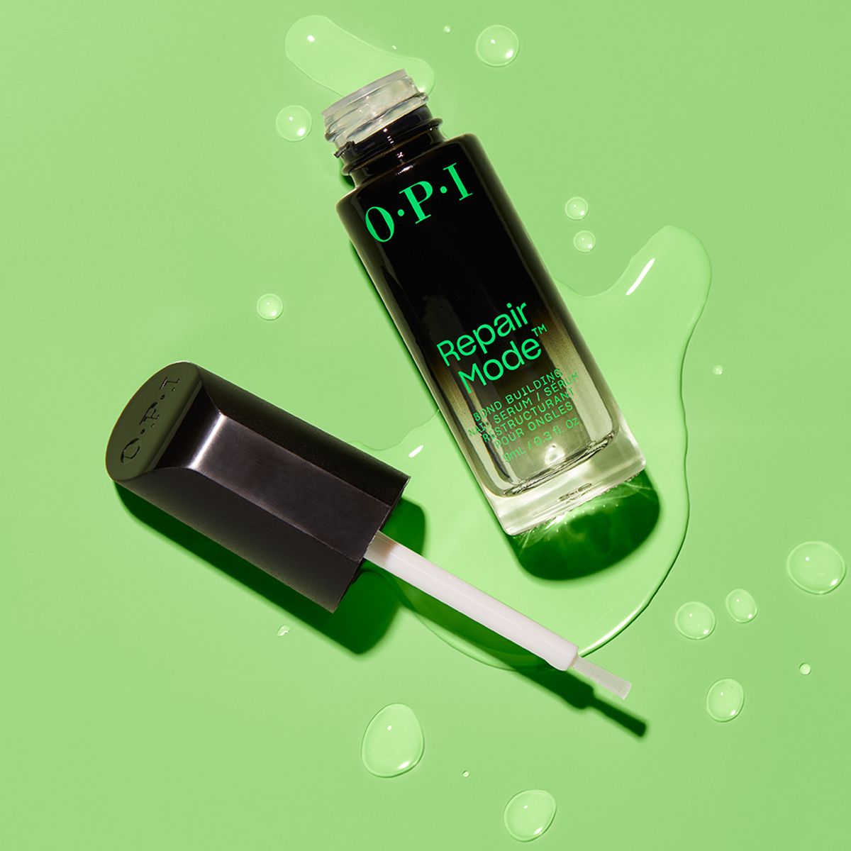 Typically, nail-strengthening products typically work by reinforcing the nail with polymer film formers to create a protective shield over the surface of the nail. But, when the product is removed, the strengthening effects are removed, too. “Ulti-Plex is OPI’s breakthrough patented technology that allows the Repair Mode serum to penetrate the nails, interact with the nail keratin and create new bonds. It repairs from the inside via the biomimicry of the nails’ natural keratin to restore nails to their natural condition.”