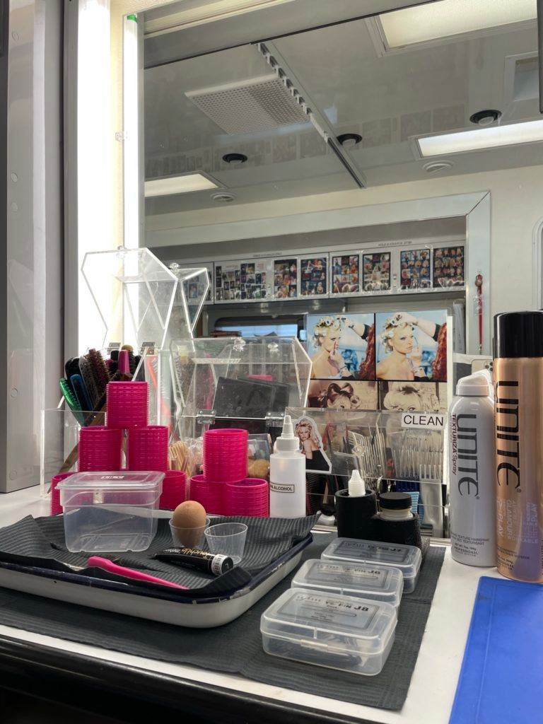 While the custom-made, lace-front wigs might be the big secret to nailing the style (so were UNITE products, which were fully stocked on set), Moe says it takes some steps—and a very unique heat source—to get it "just right."