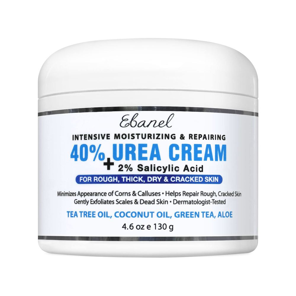 Dr. Longwill suggests applying an exfoliating cream that contains urea—between 20 and 40 percent—and glycolic acid, which are specifically meant for gentle exfoliation over time and will keep dry skin smooth. "Before bed, apply the cream and then put on cotton socks," says Dr. Ross. “Do this every night for a week or two to lock in moisture and help soften the rough patches on your heels while you sleep.” Two OTC products Dr. Houshmand likes: Ebanel Urea 40% Cream with 2% Salicylic Acid ($20) and Eucerin Urea Repair Cream 30% ($25).