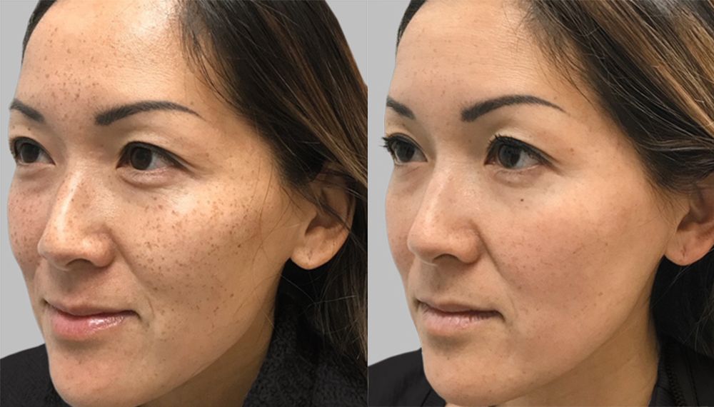 This patient saw improvement of her sunspots and freckles one month after a Fraxel treatment with Melville, NY dermatologist Kally Papantoniou, MD.