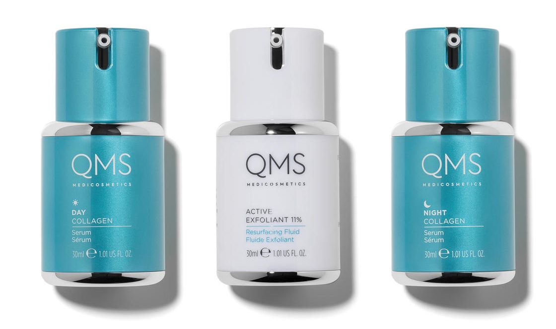 We hear that one of her secrets was skin care brand QMS Medicosmetics, a doctor-developed German line that Zellweger’s makeup artist and skin care specialist Dana Hamel chose specifically for her because of the “complete collagen-focused regimen.”