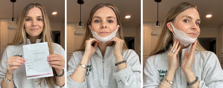 Another big plus about this mask is that it's what we call a dry sheet mask. It's not sopping wet with serum that will drip down your neck and onto your clothes. Instead, it goes on "dry," and essentially melts into the skin over the 20-minute period that you wear it. After 20 minutes, it produces an instant de-puffing and sculpted effect on the chin, jawline and upper part of the neck. In fact, in a clinical study, it proved to "lift skin and provide immediate sculpting on the chin in only one use." Additionally, 90 percent of participants agreed there was a noticeable difference after using the mask, and their double chin looked reduced."