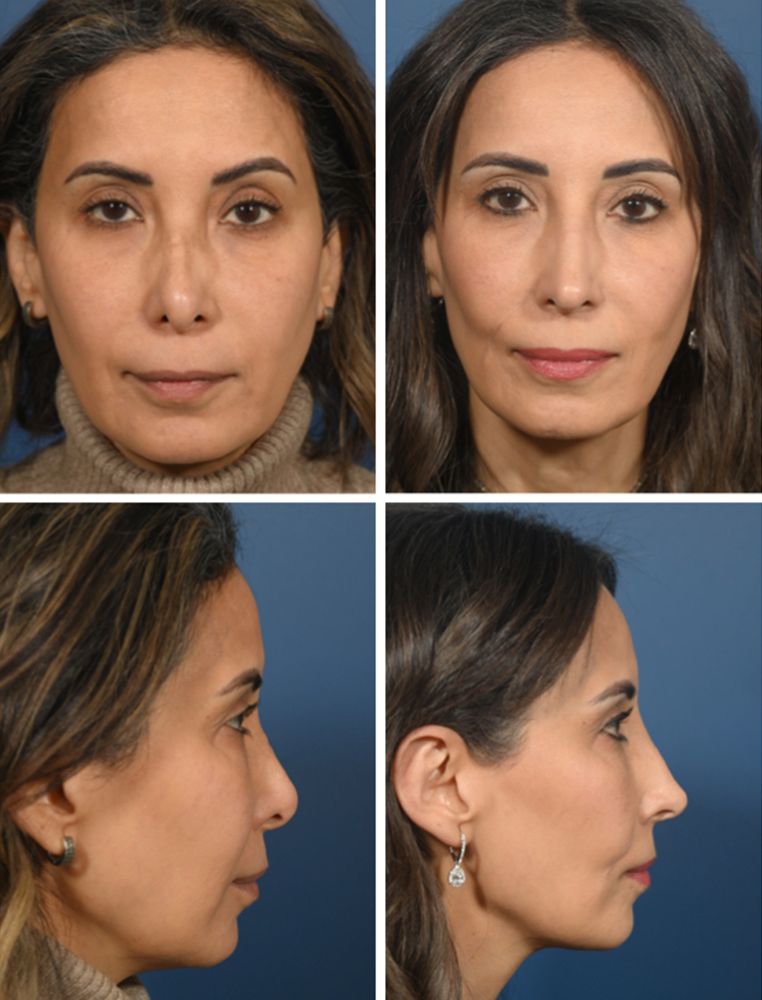 This lovely patient presented after multiple failed rhinoplasty surgeries. She was left with an asymmetric tip, extensive scarring, and a short nose. Using rib cartilage, the nose was lengthened and the tip was made more symmetric.