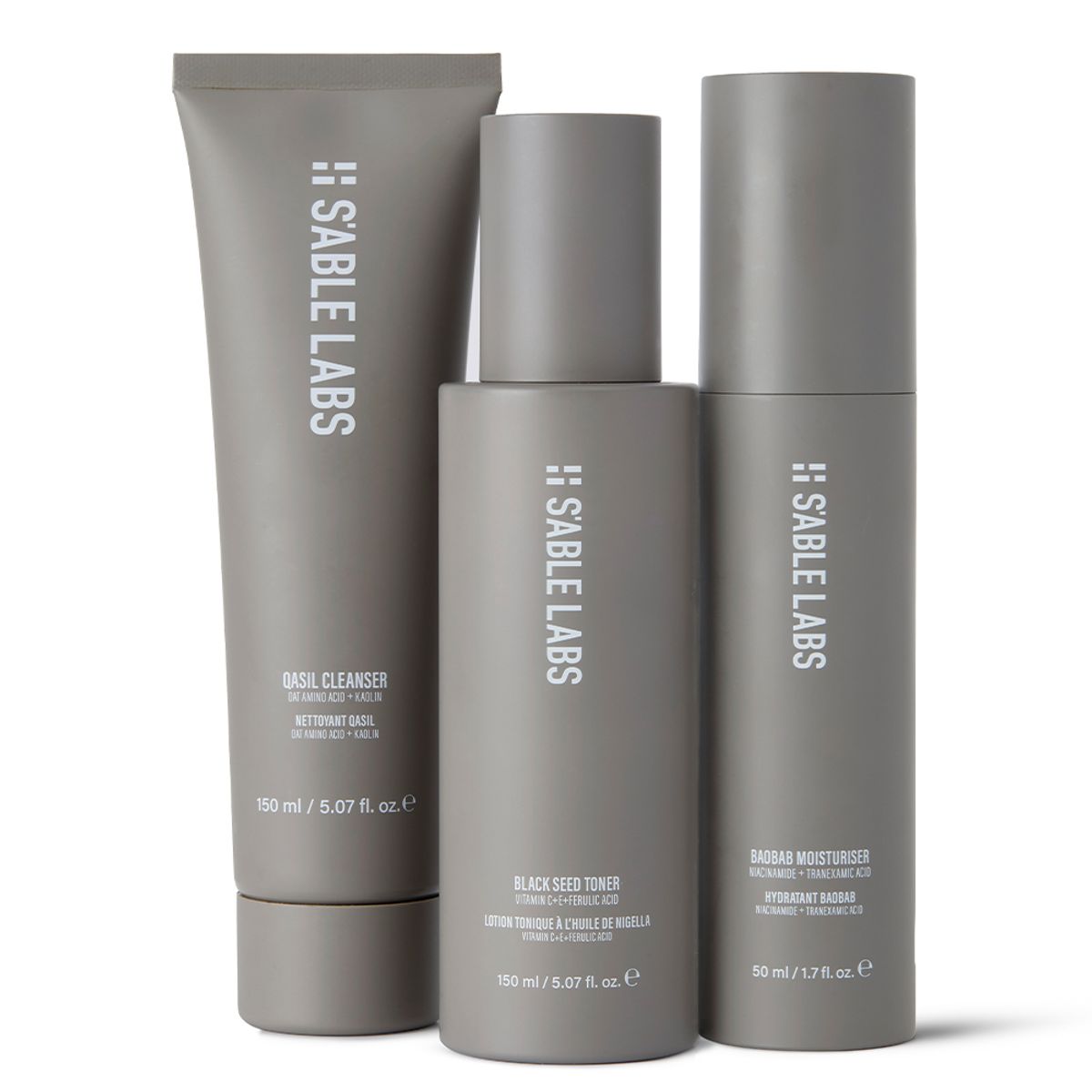 I personally started getting annoyed when I would be shopping for skin care and it’d be one vial for niacin and one vial for hyaluronic acid. Of course, there are brands that have done all of that really well. We can put all these things together in a formulation. We don’t need a single, separate product for everything. It’s not very climate-friendly or climate-forward thinking, so we wanted to jam-pack everything together and have these three core essentials that make up an effective and simple routine. You can share them with your partner, with a friend, with a roommate. You can use less because you use them together—you just have these three things that can be everything you need and all you wanted.