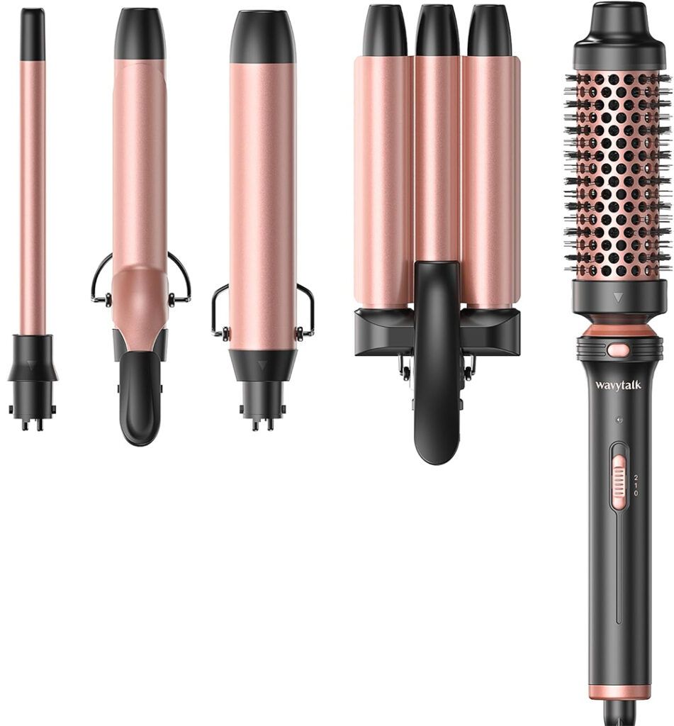 Wavy Talk's Curling Wand set comes with protective gloves, two hair clips and five interchangeable barrels: a 1.5" thermal brush, a three-barrel curling iron, a 0.5" wand, 1" curling iron and a 1.25" curling wand. Simply put, you can create every type of style—loose waves, tight spirals, voluminous curls, mermaid crimps and more. And with ceramic and PTC Technology, plus a 30-second heat time, hair stays smooth and faces minimal risk of damage.
