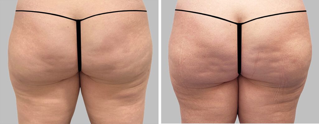 Delray Beach, FL dermatologist Dr. Janet Allenby says she has found the winning cellulite combination that is completely noninvasive. Using Resonic, which harnesses high-frequency soundwaves, and Morpheus8 radio- frequency microneedling, she can effectively address common cellulite concerns. Sofwave is an ultrasound-energy based treatment that was FDA cleared to treat cellulite as well. “It heats up the tissue to help lift and tighten mild to moderately loose skin,” Dr. Allenby explains. “The microneedling with radio-frequency further heats and tightens the skin to give the area a smoother look.”