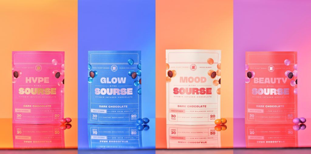 There are currently four different types of Sourse chocolate vitamins to choose from, including Glow Bites, infused with collagen for smoother skin; Hype Bites, with B12 to boost energy, clarity, and focus; Mood Bites, featuring saffron and vitamin D; and Beauty Bites, which include biotin to promote stronger and longer hair and nails.