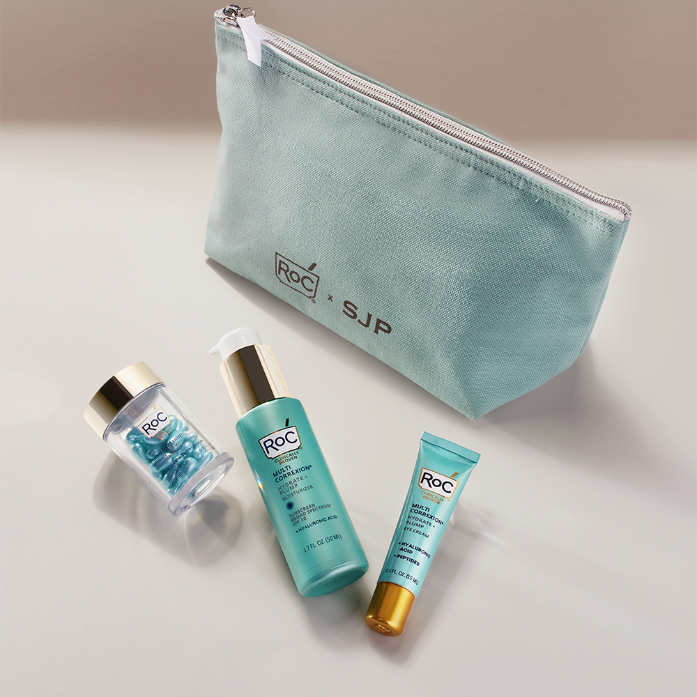 To celebrate the launch of this important initiative, a limited-edition gift set with Sarah Jessica Parker's all-time favorite RoC products is available for purchase. Included in the kit: Multi Correxion Hydrate + Plump Night Serum Capsules, Eye Cream and Daily Moisturizer SPF 30.