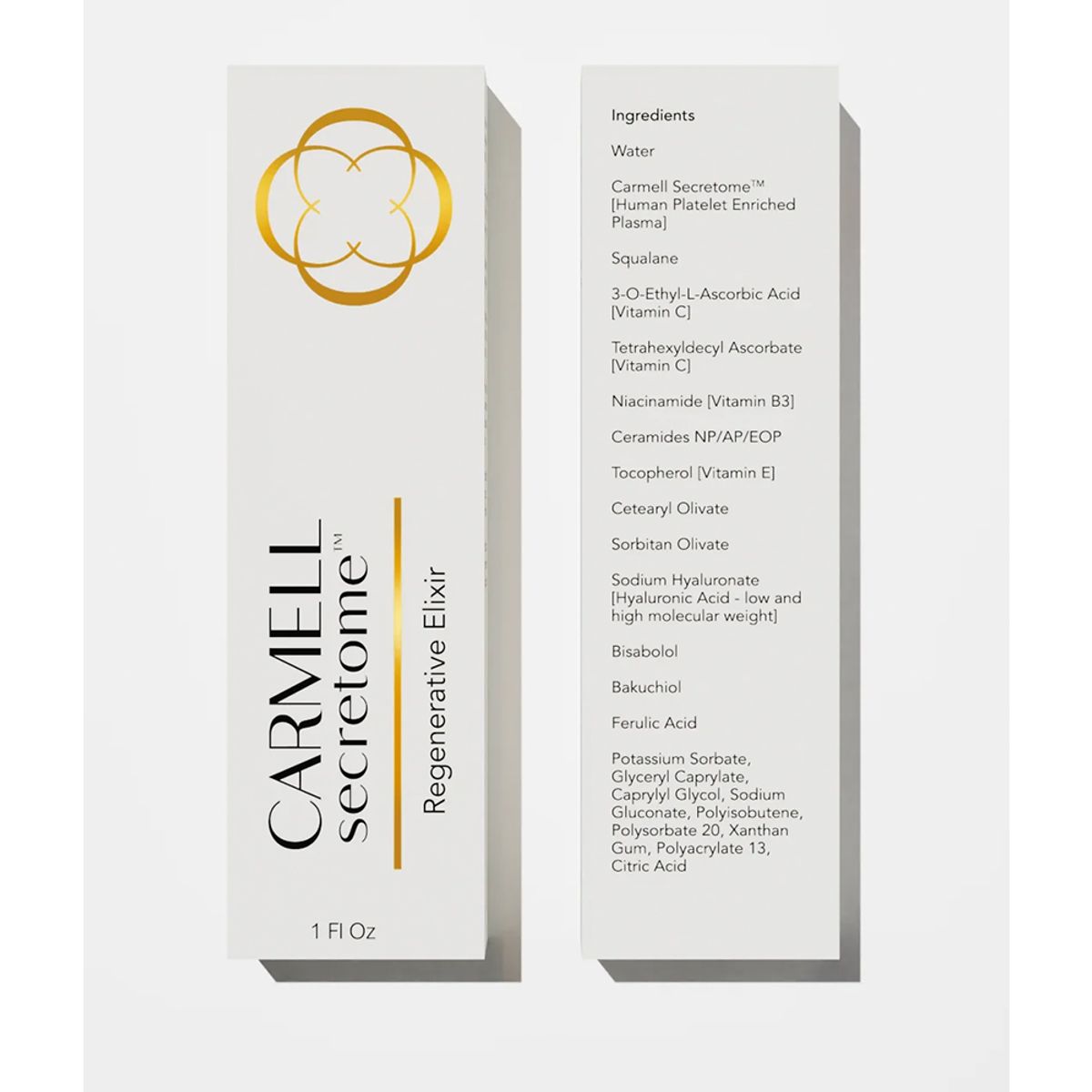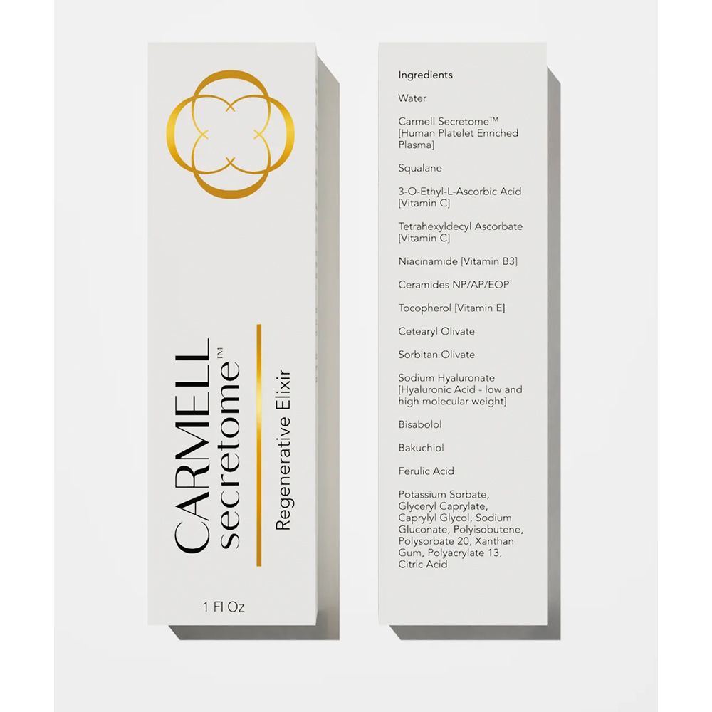 Like the human-derived growth factors we’ve seen in other products, the secretomes used in Carmell Cosmetics are derived from human tissue. These are sourced from tissue banks approved by the FDA. “We meticulously test for viral safety, bioactivity and stability,” Shukla notes. “This process involves extensive serology and viral testing, validating their potency and safety for use in treatments ranging from wound healing to cosmetic enhancements.”