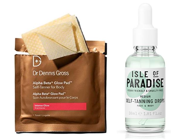 If you're craving your go-to faux tan, it's not a spray and your OBGYN gives you the green light, there are formulas made without dyes that could be a better option to help avoid any potential allergic reactions. A couple we like are Dr. Dennis Gross Alpha Beta Glow Pad for Body Intense Glow ($45) and Isle of Paradise Self Tanning Glow Drops ($32), which you can add to your face moisturizer or body lotion for a sun-kissed effect.