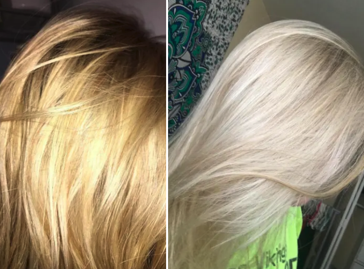 According this reviewer, these results for this before-and-after are after only using the shampoo one time. Sound too good to be true? Well, here’s how it works: Violet pigment in the shampoo tones down yellow hues on the hair by neutralizing the shades reflection. Simply apply the product to damp or dry hair for one to three minutes before rinsing. Pro tip: Use gloves when applying to your hair in order to prevent staining your hands.