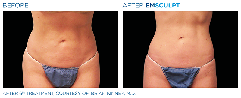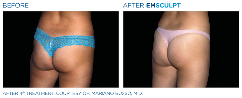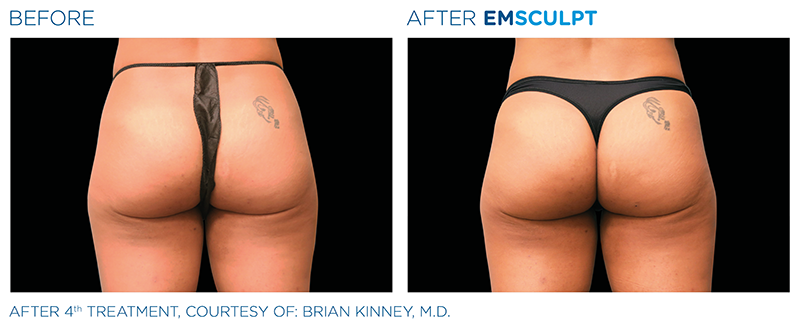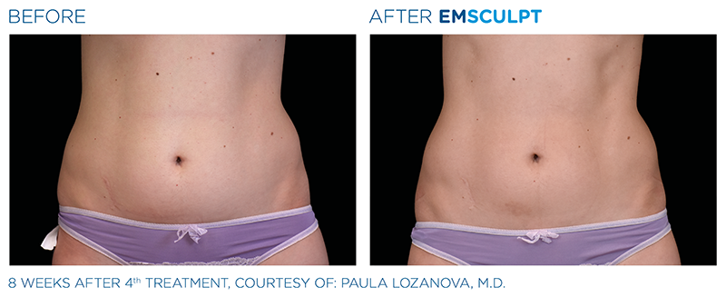 Unwanted fat can be frozen, melted, tightened and eliminated from our bodies in little to no time with help from in-office procedures, treatments and liposuction, but unless fat is injected to the area, the muscle underneath is always left untouched. BTL EMSCULPT is the first and only technology to use high-intensity electromagnetic energy to tone muscle and eliminate excess fat for a more sculpted figure. Even better, studies show improvements continue for up to three months post-treatment. During each 30-minute session, an applicator is placed over the abdomen, love handles or butt (2 applicators are used for buttocks to treat both cheeks simultaneously) as noninvasive HIFEM® (High-Intensity Focused Electromagnetic) technology destroys fat cells and induces tiny contractions to the nearby muscles. The result: a more toned physique without hitting the gym.
