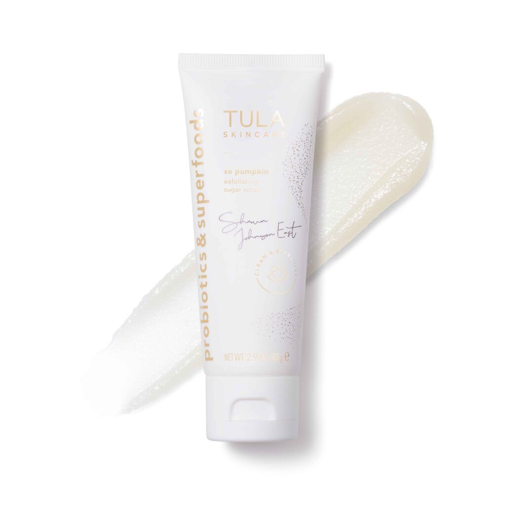 I start by exfoliating using my TULA Skincare So Pumpkin Exfoliating Sugar Scrub. This is my favorite part of my routine, and it is super gentle.