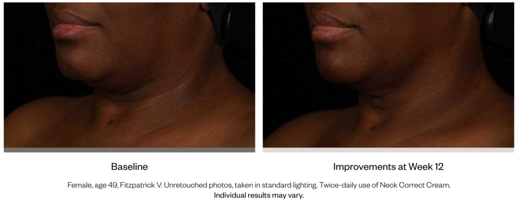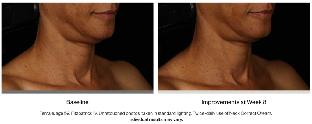 In clinical studies testing the cream on the neck, after 12 weeks, 98 percent of participants reported that the cream made their skin feel smoother; 88 percent reported it improved the texture of their skin; and 86 percent reported it improved the overall health and look of their neck. When the cream was tested on the décolleté, 98 percent reported it made their skin feel smooth and soft; and 91 percent reported it improved the texture of their skin.