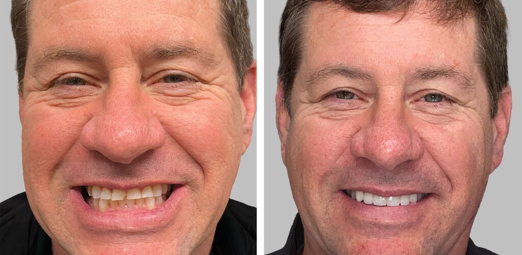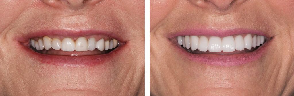 Powell, OH cosmetic dentist Neal Patel, DDS replaced older fillings and restorations with ceramic crowns, implants and veneers to lift the bite and improve function and facial harmony. To establish proper function, each tooth was restored to ideal condition.