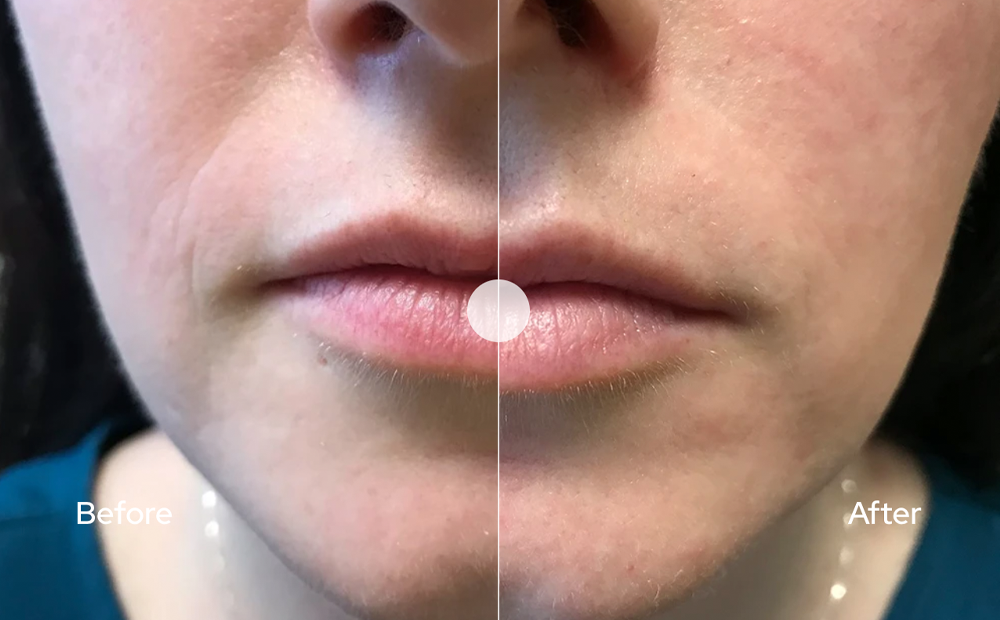 "The three-step system shown can be effective to anti-aging the smile, as serums help to hydrate and plump, while massaging the area stimulates collagen. The lip mask is also great in keeping lips and skin soft and supple." However, Dr. Hoffman adds that this will not be effective for individuals with more advanced signs of aging. If you fit into this category, he recommends visiting your medical provider to receive more aggressive treatments. "A great treatment that offers instant gratification for rejuvenating the mouth is adding filler to replace lost support in the perioral and lips."