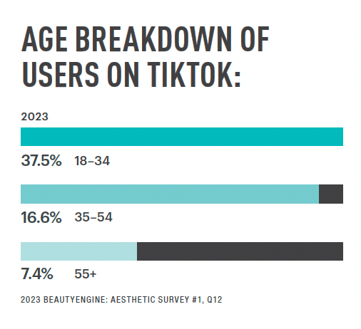 With 37.5% of respondents aged 18-34, TikTok presents a fantastic opportunity for providers to connect with younger demographics seeking cosmetic procedures. Short-form videos have been leading the way to help educate and attract patients about their providers and chosen procedures. Additionally, 16.6% of users on TikTok are aged 35-54, indicating an increasing number of adults joining the platform.