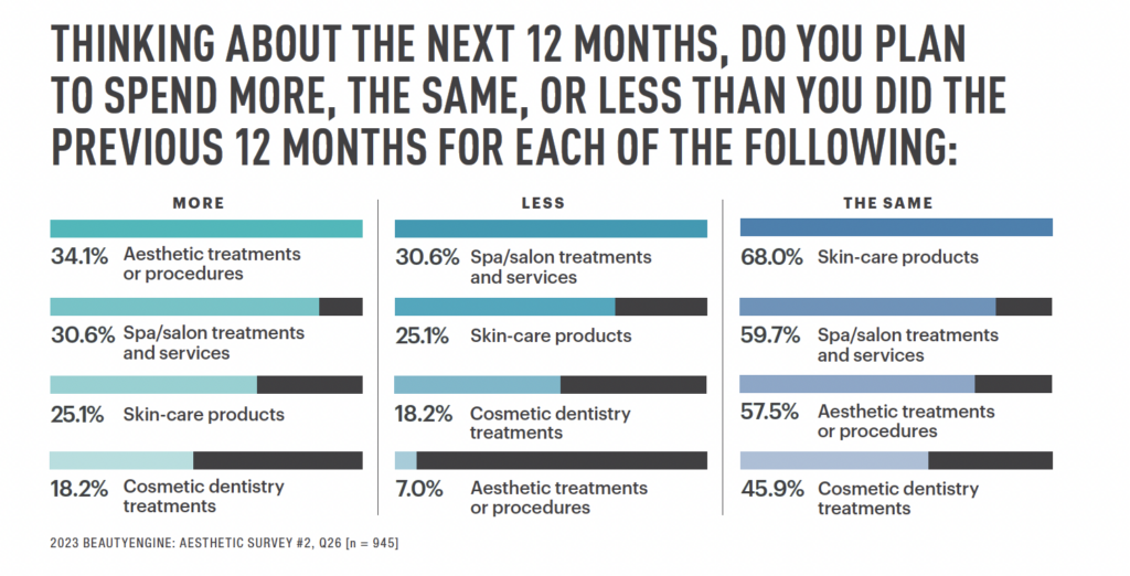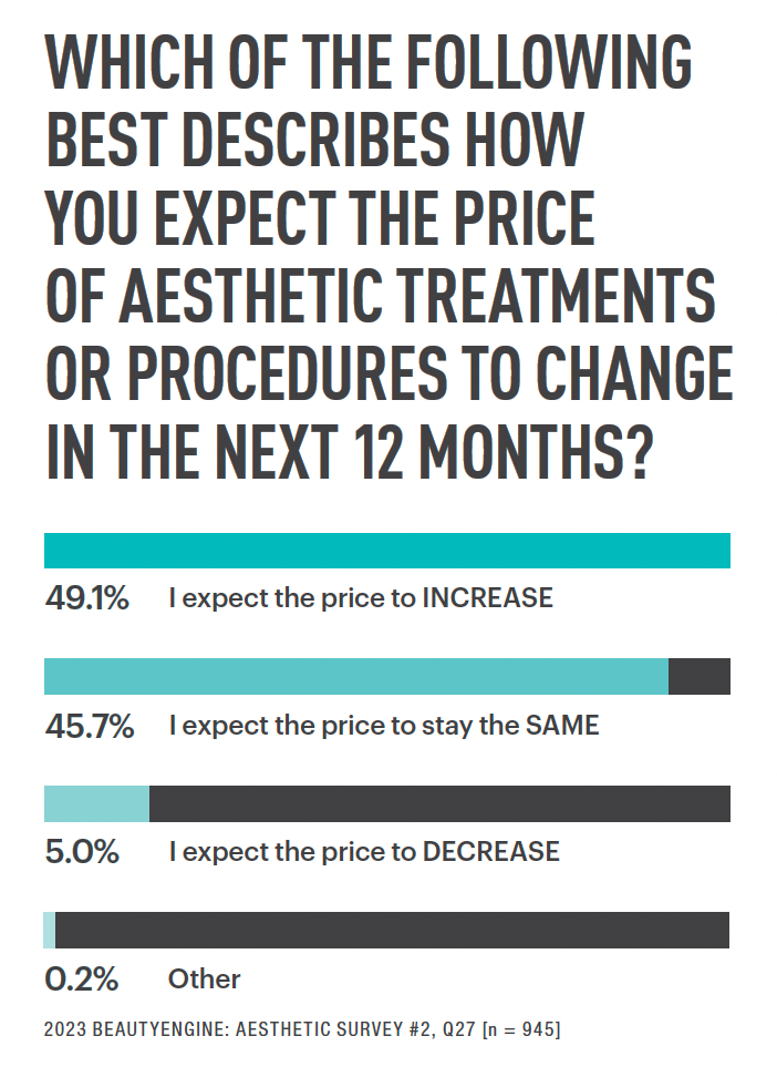Despite economic uncertainties, 57.5% of respondents said they plan to maintain their current spending on procedures and treatments. However, 49.1% expect prices of aesthetic treatments to increase in the next 12 months.