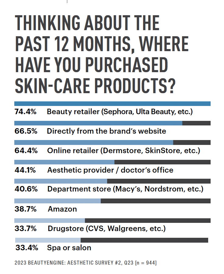 Surprisingly, 44.1% of patients said they purchased skin care products directly from their aesthetic provider or doctor’s office in the past 12 months. This presents an opportunity to enhance the patient experience and ensure knowledgeable staff can suggest suitable products to their patients.