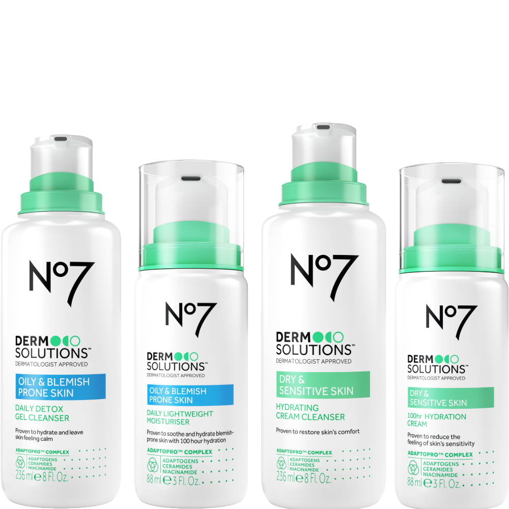 With a skin type as irregular as subclinical skin, it may feel impossible to nail down a routine that provides real, consistent symptom relief. That's why No7 developed its Derm Solutions line, a collection of products aimed at soothing and healing subclinical skin. "No7 Derm Solutions Cleanser ($18) and Moisturizer ($28) has been dermatologist-approved and expertly formulated for sensitive skin and your specific, subclinical skin type," says Dr. Bell, who adds that keeping your regimen simple is key to handling subclinical skin. "Stick to products that you know your skin tolerates, and try to keep to the same brand to minimize the number of different ingredients your skin is exposed to," Dr. Bell says. Whether your subclinical skin skews more oily and blemish-prone or drier and more sensitive, No7's Derm Solutions line offers a simple, science-backed cleanser and moisturizer duo to help you take control of your symptoms.
