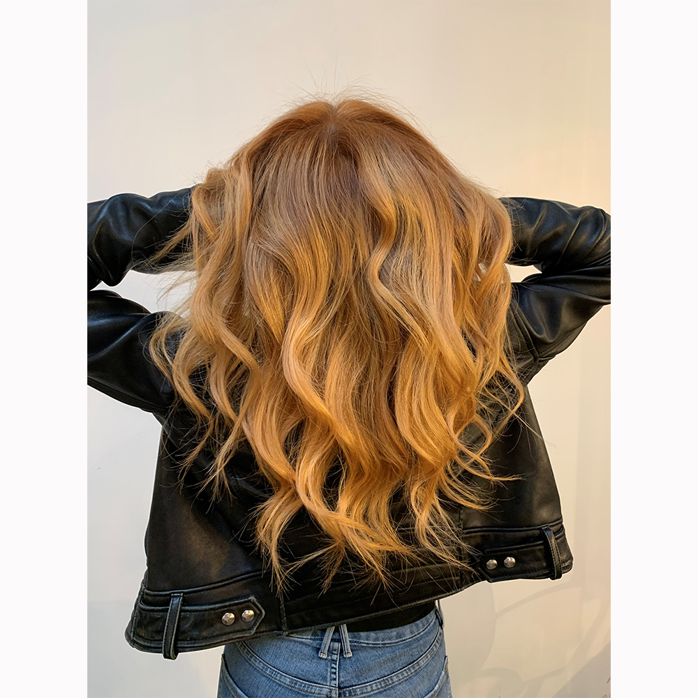 “I lifted this client’s regrowth color by four shades using Matrix Ultra Lift in Rose Gold,” says Papanikolas. “I then did an allover glaze with Biolage Plant Based Color in Ginger Copper. The henna base color can be highlighted over and lasts about 20 shampoos. It is especially helpful on compromised hair!”