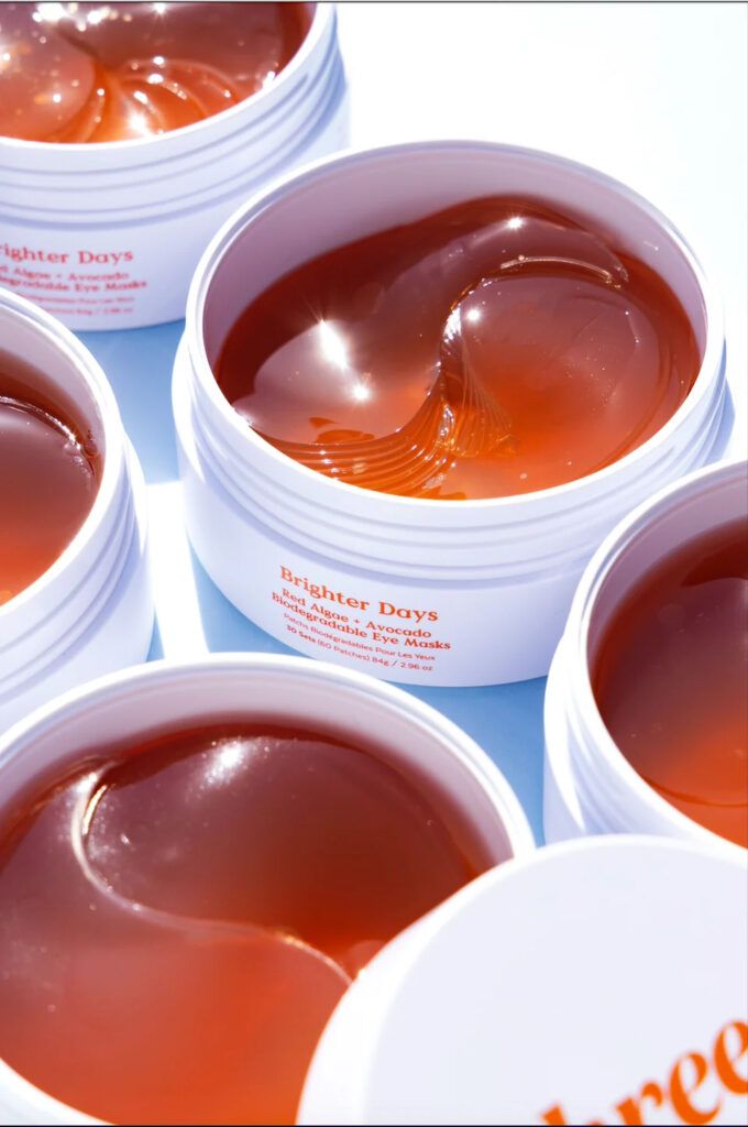 Before I get carried away, let me back up a bit. Brighter Days Red Algae + Avocado Biodegradable Eye Masks are hydrogel eye masks designed to brighten, depuff and hydrate the under-eye area in just 10 minutes. Each patch contains antioxidants, fatty acids and humectants thanks to red algae, avocado extract and glycerin. Red algae is a potent antioxidant and amino acid-rich hydrator that gives the patches their jelly-like texture and biodegradable abilities. Avocado extract brightens and acts as an emollient for smoother and softer under-eye skin. Glycerin is a humectant that penetrates below the surface to plump and lock in moisture for a visibly depuffed under eye. (Pro tip: throw the whole jar in the fridge for an extra refresh and depuffing treatment.)