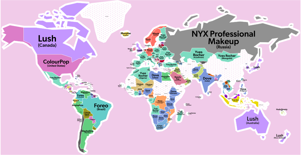 The most searched product so far this year has been L’Oréal Paris Magic Retouch Instant Root Concealer Spray, which comes as no surprise with much of the world in quarantine over the course of the last six months with no access to hair salons. For a more in-depth look at the most in-demand beauty brands in each country, check out the map below.